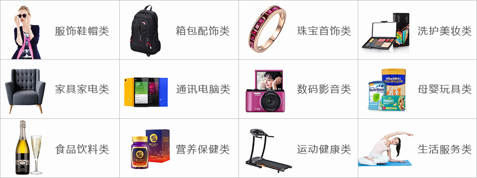 供货商涵盖小家电、男女服饰、鞋包配饰、数码产品、日用百货、运动户外、珠宝手表、食品保健、美容彩妆、母婴用品。