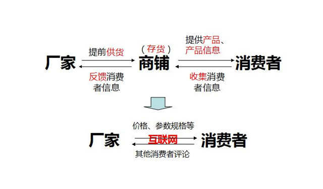 以前,商铺能帮助厂家找到顾客,同时帮助消费者找到厂家,如今互联网时代,商铺的服务价值已经贬值,商品不再需要实体店铺,消费者可以通过网络了解到比商铺还多的信息,从价格到各种参数规格,甚至是其他使用消费者对这款商品的评论。