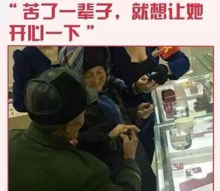 新疆库尔勒市一位年迈的老人,用积攒多年的零钱,给老伴买了枚钻戒。老人说:“苦了一辈子,就想让老伴开心一下。”也许这就是浪漫,不分年龄和身份,当你发苍齿摇,步履蹒跚,依然相守如初。