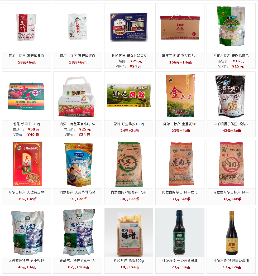 蒙古特产(兴安盟)主营内蒙古万佳(集团)产品和阿尔山特产。 内蒙古万佳(集团)有限公司坐落在大兴安岭南麓、广袤的科尔沁草原腹地,公司以农产品加工为主,是兴安盟农牧业产业的龙头企业。经营项目涉及食品加工、基地种植、商贸服务、房地产和建筑设计五大行业。 兴安盟阿尔山市白狼天原林产有限责任公司是阿尔山市白狼镇一家新兴企业,为内蒙古东北林区一家产权主体多元化和投资方向多元化的公司制企业。公司下设鹿产品、旅游、工艺品、土特产开发、木材深加工等部门。