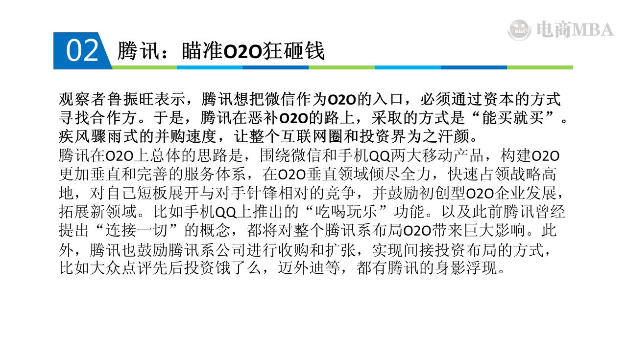 【多赢·视点】5张图看清五大巨头在O2O领域的布局(电商MBA群荐)