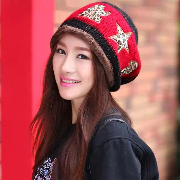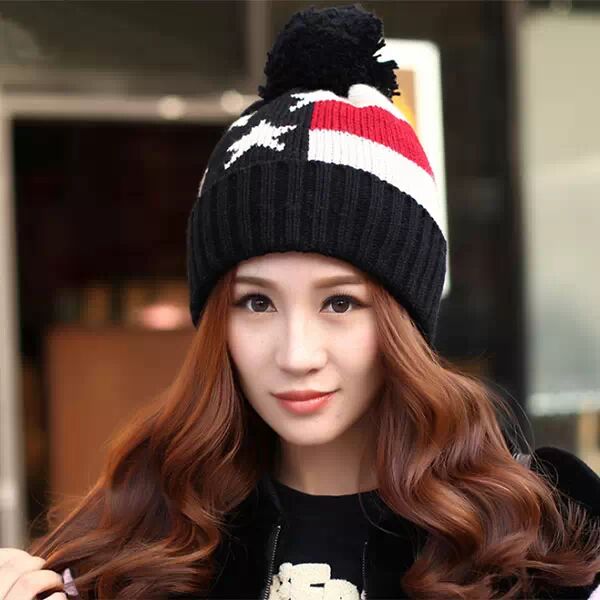 东郭先生 米字旗女帽 保暖毛线帽